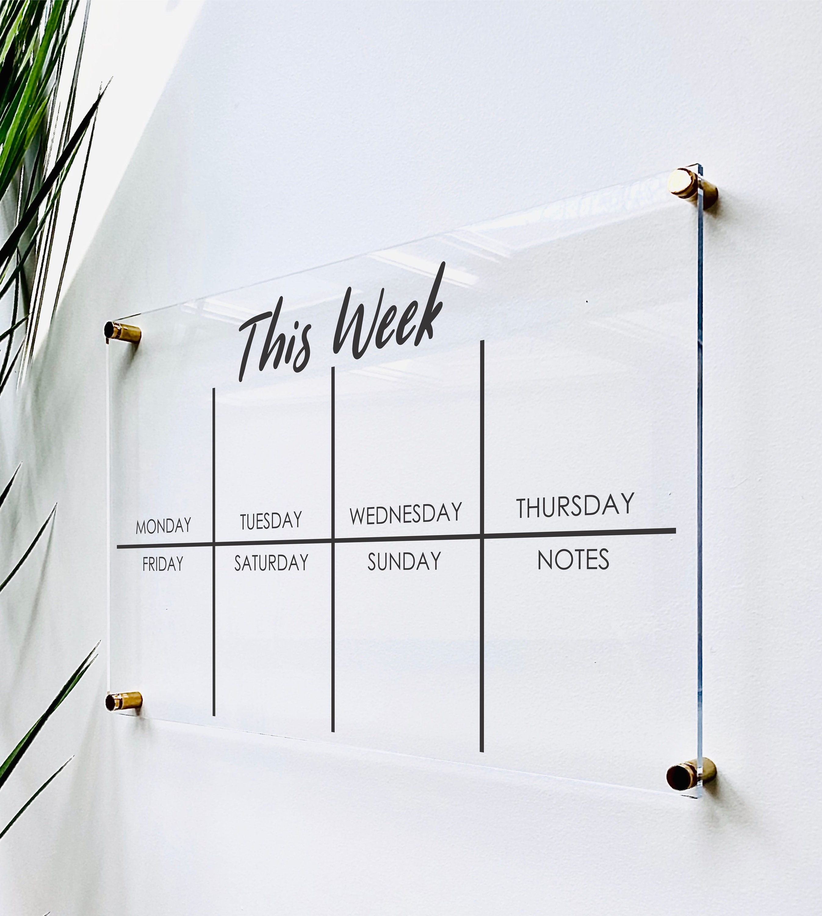 Acrylic Weekly Calendar Board For Wall. Professionally printed on 1/4 thick acrylic, our wall calendars are absolutely stunning and are sure to shine in any space. Professionally printed on 1/8 thick acrylic, our acrylic weekly board pairs perfectly with our acrylic calendar line.